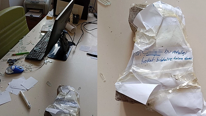Notta, 'Dr. C. bu mahalleyi terk et, bir dahakine kafana atarız' yazıldığı görüldü. Sabah camın kırıldığını ve taşın üzerindeki tehdit notunu gören sağlıkçı çalışanları durumu polise bildirdi. Olay yerine gelen ve incelemelerde bulunan ekipler, şüpheli veya şüphelilerin tespiti ve yakalanması için çalışma başlattı.