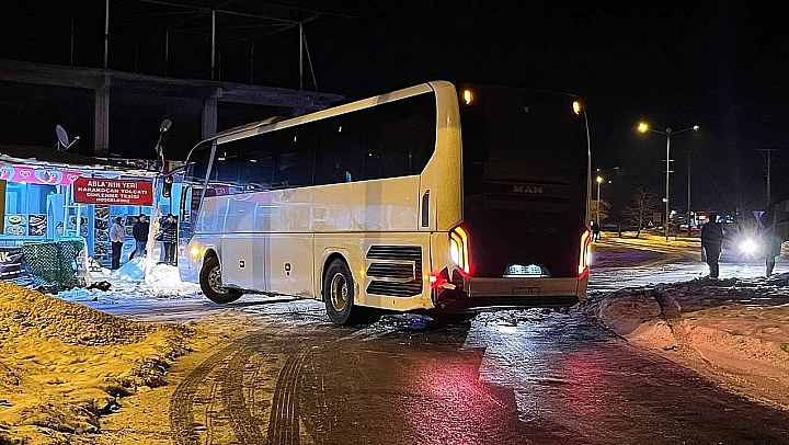 Elazığ'da karlı ve buzlu yolda kayan otobüs, devrilmekten son anda kurtuldu. Facianın eşiğinden dönüldüğü olay, güvenlik kameralarına yansıdı.
