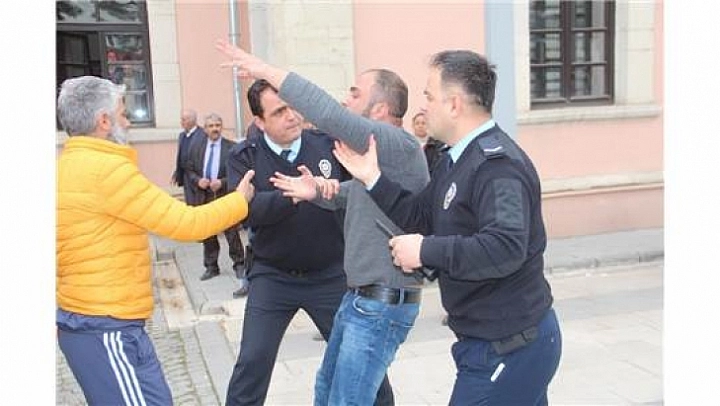 Olay, merkez Çarşı Mahallesi Hürriyet Caddesi Valilik binası önünde meydana geldi. Edinilen bilgiye göre, bir spor kulübünün yöneticilerinden olan F.A. isimli şahıs, üzerindeki kıyafeti çıkarıp bıçakla kendini kesmeye çalıştı. Durumu fark eden valilikteki polisler olay müdahale ederken, takviye polis ve sağlık ekibi çağrıldı. Kendisini hafif yaralayan şahıs, polisin uzun uğraşları sonucu ikna edilerek, olay yerinde hazır bekletilen ambulansla Eğitim Araştırma Hastanesine götürüldü. Öte yandan, meydanda toplanan vatandaşlar olayı film izler gibi baştan sona seyretti.