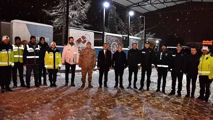 Elazığ'da yılbaşı gecesi etkisini artıran yoğun kar yağışı, buzlanma ve dondurucu soğuk havaya rağmen, vatandaşların yeni yıla huzur ve güven içerisinde girebilmesi için Emniyet Müdürlüğü ve Jandarma Komutanlığı ekipleri çalışmalarını sürdürüyor.