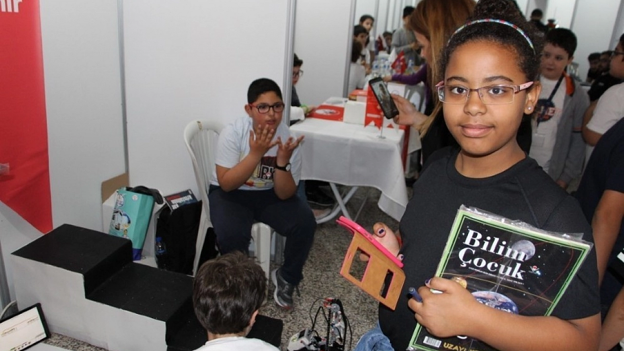 Sergilenen robotları dikkatlice inleyen öğrenciler robotlar hakkında sorumlulardan bilgi aldı.