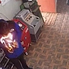 Elazığ'da yapıştırıcı spreyi elindeyken çakmak çakan şahsın yüzü bir anda alevlerin arasında kaldı. O anlar kameralara yansıdı.