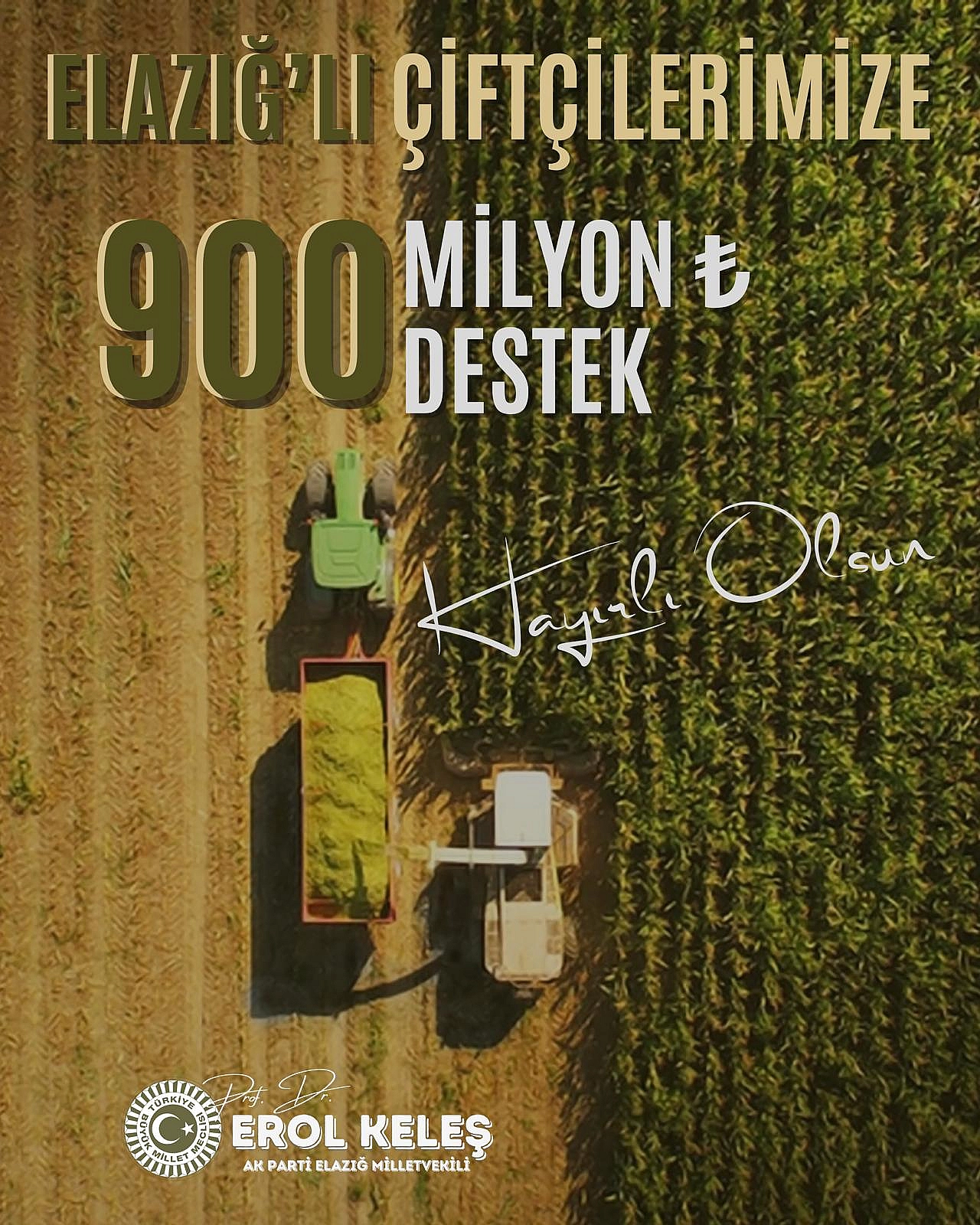 Açıklamasının devamında Keleş, şu ifadeleri kullandı: “Çiftçimizin emeğini gözeten, alın terine sahip çıkan başta Cumhurbaşkanımız Sayın Recep Tayyip Erdoğan olmak üzere, Tarım ve Orman Bakanımız Sayın İbrahim Yumaklı’ya ve emeği geçen herkese Elazığlı vatandaşlarımız adına şükranlarımı sunuyorum.