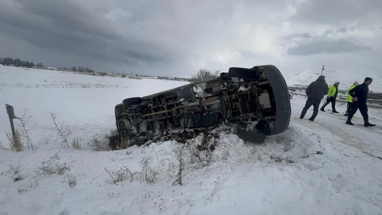 Kar yağışının etkili olduğu Elazığ'da minibüsün şarampole devrilmesi sonucu meydana gelen trafik kazasında 9 kişi yaralandı.