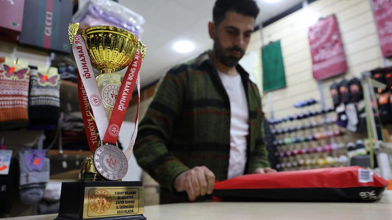 Elazığ'da terzilik yapan Lokman Korucu, bilardoda Türkiye ikinciliği ve birçok il birinciliği elde etti. Dükkandaki kupalar müşterileri hem şaşırtıyor hem de başarısını gösteriyor.