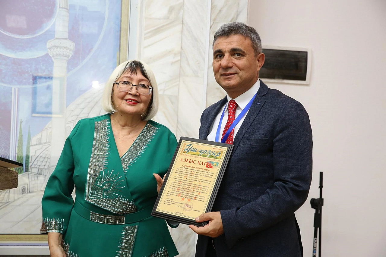 “Türk dünyası kardeşliğine ve kültürel bağların güçlenmesine sunduğumuz katkılardan dolayı, Kırgızistan’da bizlere anlamlı bir Teşekkür Belgesi (Алғыс хат) takdim edildi. Kırgız-Kazak dostluğunu ve kültürel bağları tanıtma, duyurma ve destekleme yönündeki emeklerimizden ötürü böylesine değerli bir belgeyle onurlandırılmak benim için büyük bir gurur. Bu ödülü şahsıma layık gören kıymetli dostlarımıza en içten teşekkürlerimi sunuyor, Türk dünyasının kadim kardeşliğinin ilelebet sürmesini diliyorum.”