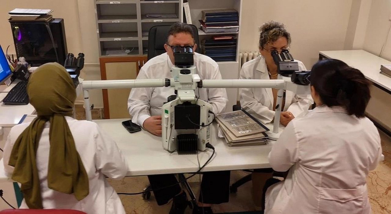 Anabilim dalında yılda 27-28 bin arasında biyopsi değerlendirildiğini aktaran Özercan, "Bu sayı bölgenin sağlık yükünün önemli bir kısmını temsil ediyor. Patolojiye başvuran birçok hasta, ‘kanser miyim' endişesi yaşıyor. Her doku örneği kanser anlamına gelmiyor. Patoloji sadece kanser tanısı koymaz. Tüberküloz gibi enfeksiyon hastalıkları, lupus gibi bağışıklık sistemi hastalıkları ve deride oluşan lezyonlar da doku incelemesiyle teşhis edilebilir. Laboratuvarda işlenen tüm örneklerin tanısı mikroskop altında netleştirilmektedir. Laboratuvarda kanser tanısı doğruluğunu artıran birçok ileri yöntem kullanıyoruz. İmmünohistokimya, histokimya ve insitu hibridizasyon gibi tekniklerin tanıda önemli katkı sunuyor. Anabilim dalında 7 öğretim üyesi, 10 asistan ve yaklaşık 17 teknisyen/sekreter ile hizmet veriyoruz. Ekip tüm süreci titizlikle yürütüyor. Bölgede özellikle gastrointestinal sistem kanserleri, meme kanserleri ve akciğer kanserleri daha sık görülüyor. Erken tanı tedavi başarısını büyük ölçüde artırıyor. Vatandaşları bu konuda duyarlı olmaya çağırıyorum. Şüpheli bir durumda mutlaka sağlık merkezimize başvurarak biyopsi örneğinin değerlendirilmesini sağlamak büyük önem taşıyor" diye konuştu.