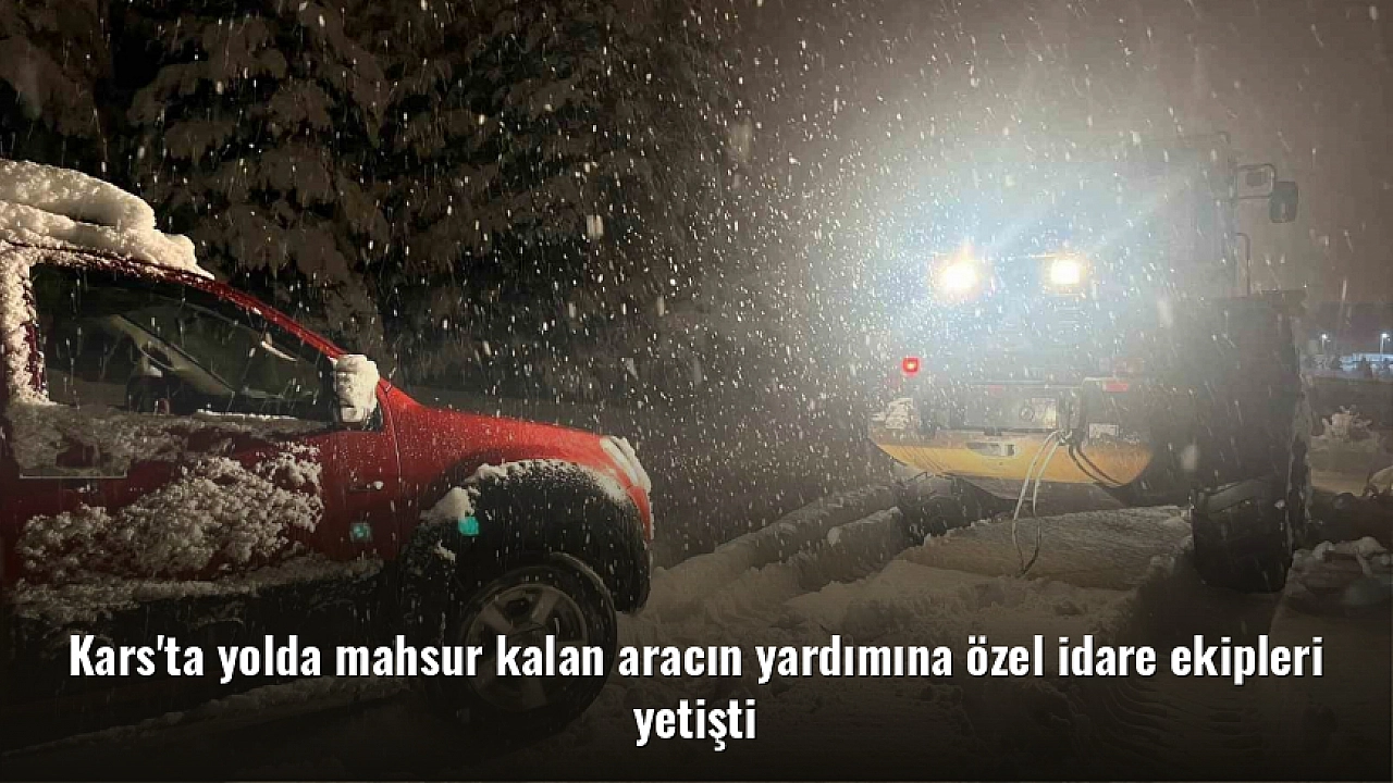 Kars'ta yolda mahsur kalan aracın yardımına özel idare ekipleri yetişti